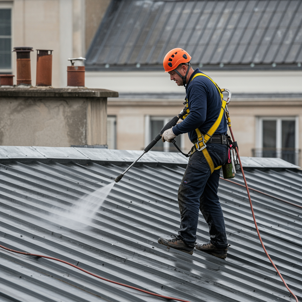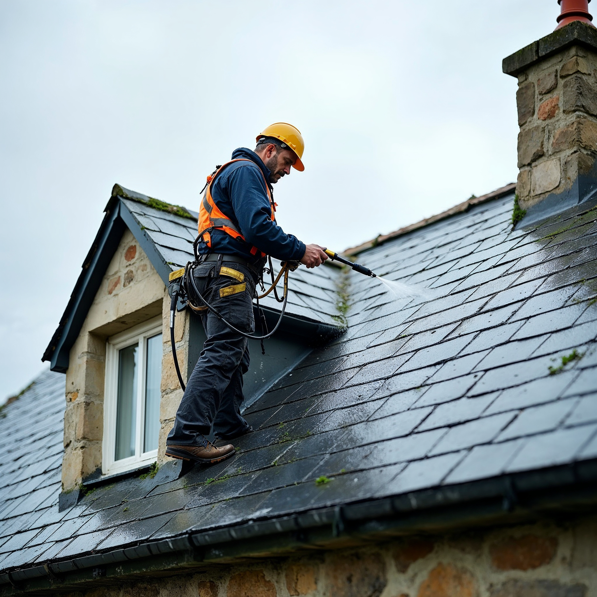 Avant toute intervention, nous réalisons un diagnostic complet de la toiture afin d’identifier les zones fragilisées, les fissures éventuelles et le niveau d’encrassement. Cela nous permet d’adapter nos techniques de nettoyage à votre couverture.