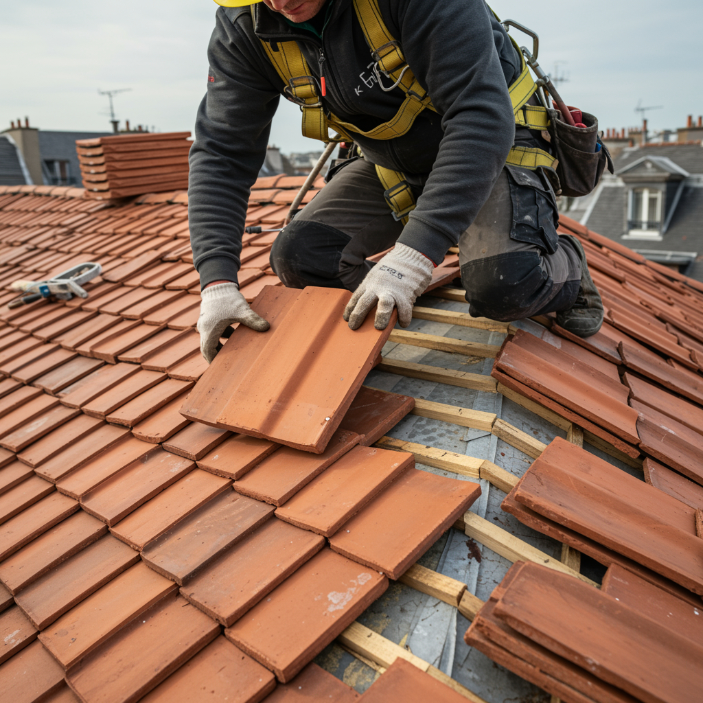 Remise en état des tuiles, ardoises ou joints défectueux.